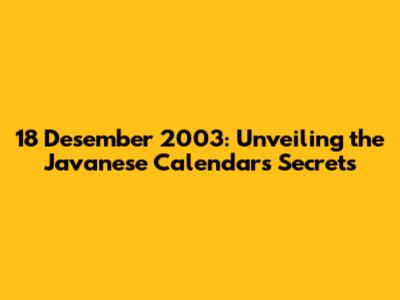 18 Desember 2003: A Deep Dive Into The Javanese Calendar