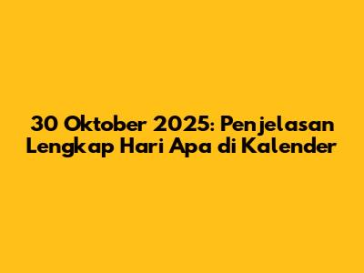Dalam artikel ini, kami tidak hanya akan mengungkap hari apa pada tanggal 30 Oktober 2025, tetapi juga memberikan wawasan tambahan mengenai potensi acara atau perayaan yang mungkin terkait dengan tanggal tersebut. Jadi, tetaplah bersama kami untuk mendapatkan informasi lengkap dan berguna!
