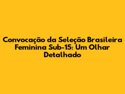 A convocação da Seleção Brasileira Feminina Sub-15 é sempre um momento emocionante para os fãs do futebol, especialmente para aqueles que acompanham de perto o desenvolvimento das jovens promessas do esporte. A cada nova lista, a expectativa é grande para ver quais talentos foram selecionados para representar o Brasil. Essa convocação é um marco importante na jornada das atletas, representando uma oportunidade única de aprimorar suas habilidades, aprender com os melhores e sonhar com voos ainda mais altos no mundo do futebol. A seleção feminina sub-15 é o futuro do futebol brasileiro, e acompanhar de perto o seu desenvolvimento é fundamental para entender o cenário do esporte no país. Ao longo deste artigo, vamos mergulhar nos detalhes da convocação, analisar os nomes das jogadoras, entender o trabalho da comissão técnica e discutir a importância desse momento para o futuro do futebol feminino no Brasil. Além disso, abordaremos como as jovens atletas se preparam para os desafios que virão e como a convocação pode impactar suas carreiras.