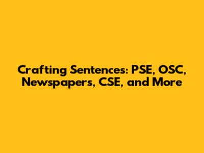 Crafting Sentences: PSE, OSC, Newspapers, CSE, And More