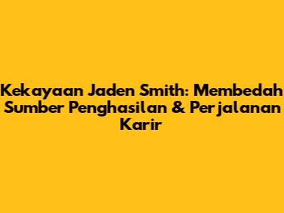 - Dari mana saja sumber penghasilan Jaden Smith? Jaden Smith mendapatkan penghasilan dari karir akting, penjualan musik, bisnis JUST Water dan MSFTSrep, serta endorsement dan investasi.