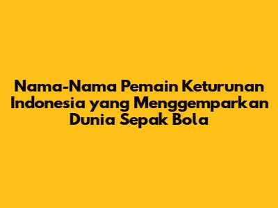Hai, teman-teman pecinta sepak bola! Siapa di sini yang suka banget sama pemain sepak bola keturunan Indonesia? Pasti banyak, kan? Nah, kali ini kita mau ngobrol seru tentang nama-nama pemain keturunan Indonesia yang berhasil bikin heboh dunia sepak bola. Mereka ini bukan cuma punya skill dewa di lapangan, tapi juga membawa kebanggaan tersendiri buat kita sebagai orang Indonesia. Penasaran siapa aja mereka dan gimana kiprahnya di dunia sepak bola? Yuk, kita simak bareng-bareng!