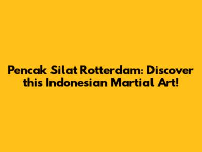 Hey guys! Ever heard of Pencak Silat? It's an awesome Indonesian martial art that's gaining popularity worldwide, and guess what? You can find it right here in Rotterdam! Let's dive into what makes Pencak Silat so special and why you should totally check it out.